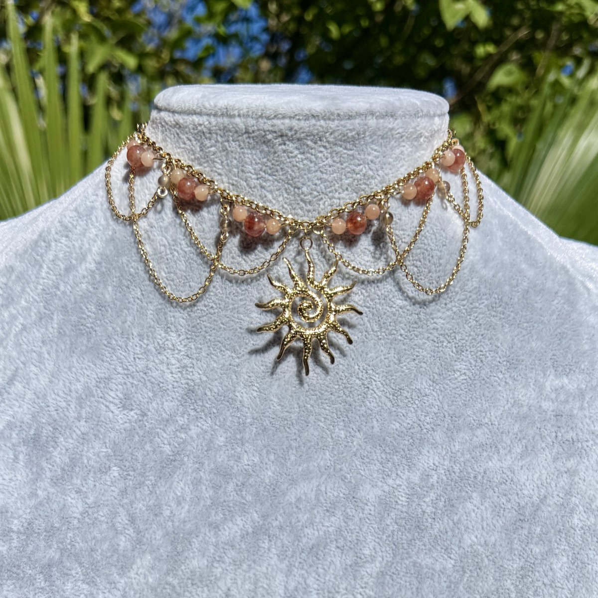 Collier lumieux la belle et pétillante Stella, c'est un mélange de Pierres du Soleil et de Pierres de Lune (évidemment), ce collier est digne de notre star !